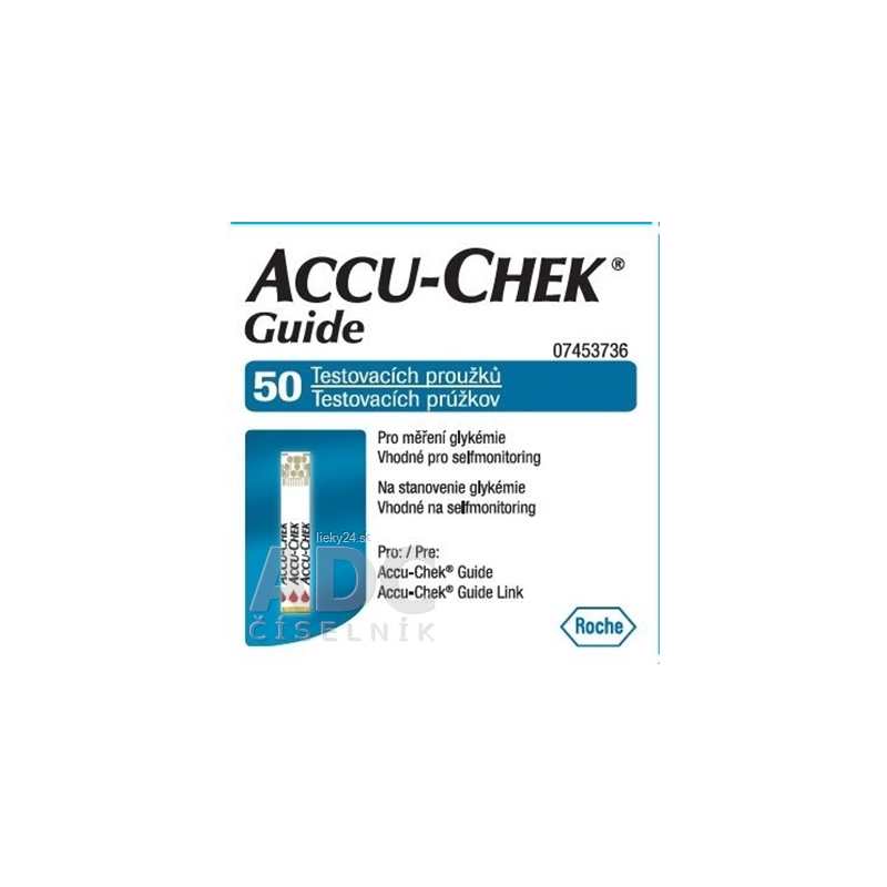 Testovacie prúžky ku glukomeru Accu-Chek Guide/Guide Link sú určené na kvantitatívne stanovenie glukózy v čerstvej kapilárnej plnej krvi z prsta, dlane, predlaktia a nadlaktia ako pomôcka pri monitorovaní efektívnosti kontroly glykémie.