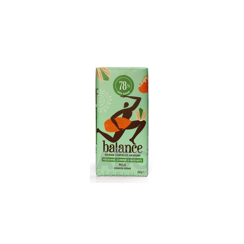 BALANCE MLIEČNA ČOKOLÁDA MANDLE, PISTÁCIE, ORECHY