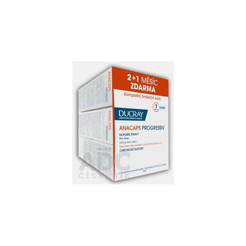 Výživový doplnok - originálne zloženie ANACAPS PROGRESSIV dodáva vlasovému folikulu biotín, zinok a selén, ktoré prispievajú k udržaniu zdravých vlasov, a vitamín B6, ktorý prispieva k správnej syntéze cysteínu. Navyše vitamín B6 prispieva k regulácii hormonálnej činnosti. Selén, zinok a vitamíny C, B2 a E prispievajú k ochrane buniek pred oxidačným stresom.