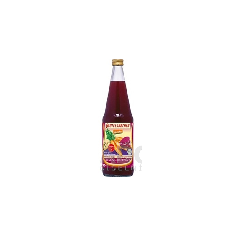 Bohatá na Pro-vitamín A. Priamo lisovaná zeleninová šťava z čerstvého zberu. Osivo z pôvodných odrôd – nešľachtené z kontrolovaného biodynamického poľnohospodárstva. Bez chemických konzervantov a farbív. Bez genetickej technológie. Bez pridaného cukru.