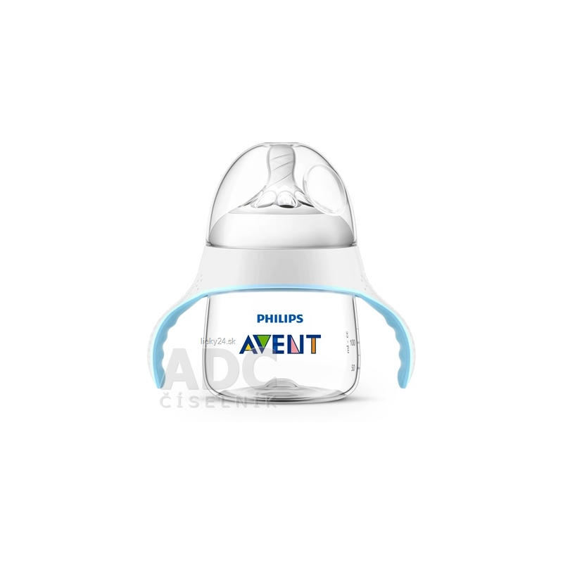 Dojčenská fľaša s mäkkým cumlíkom AVENT Natural so stredným prietokom, s držadlami. Vhodná od 4 mesiacov. Pre jednoduchý prechod od dojčenia alebo fľaštičky - na pitie z hrnčeka.