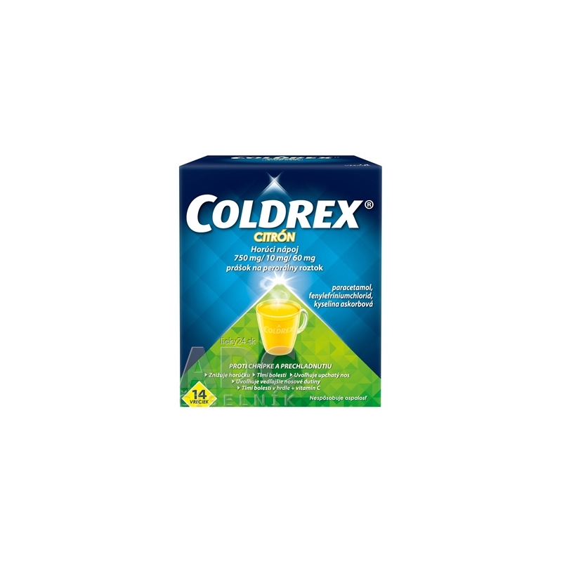Coldrex Horúci nápoj s príchuťou citróna je liek proti chrípke a prechladnutiu. Coldrex Horúci nápoj obsahuje kombináciu  liečiv, ktoré účinne potláčajú prejavy chrípky ako horúčka, bolesť, upchatý nos. Coldrex Horúci nápoj je určený pre dospelých a mladistvých nad 15 rokov (50kg telesnej váhy).