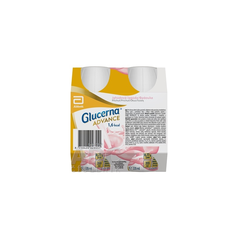 Potravina na osobitné lekárske účely. Na diétny režim pacientov s diabetom alebo poruchou metabolizmu glukózy spolu s podvýživou či rizikom vzniku podvýživy v súvislosti s chorobou. Na perorálne užívanie. Jahodová príchuť.