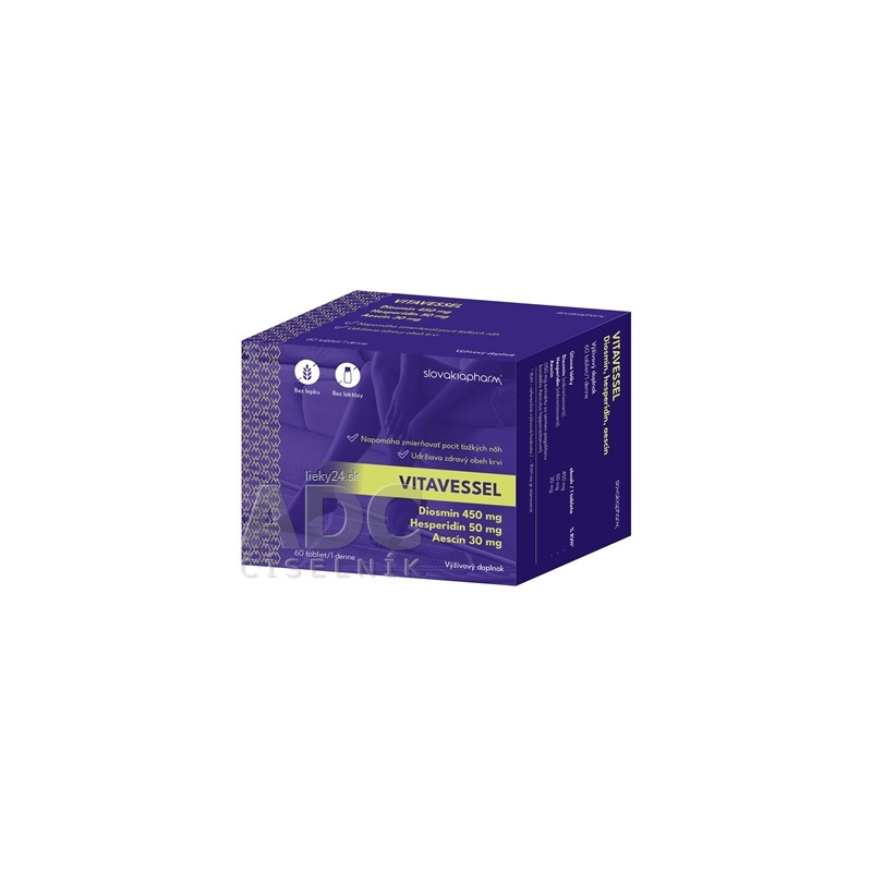 Výživový doplnok s obsahom flavonoidov diosmínu (450 mg) a hesperidínu (50 mg) doplnených o aescín (30 mg) vo forme rastlinného extraktu pagaštanu konského (Aesculus hippocastanum).