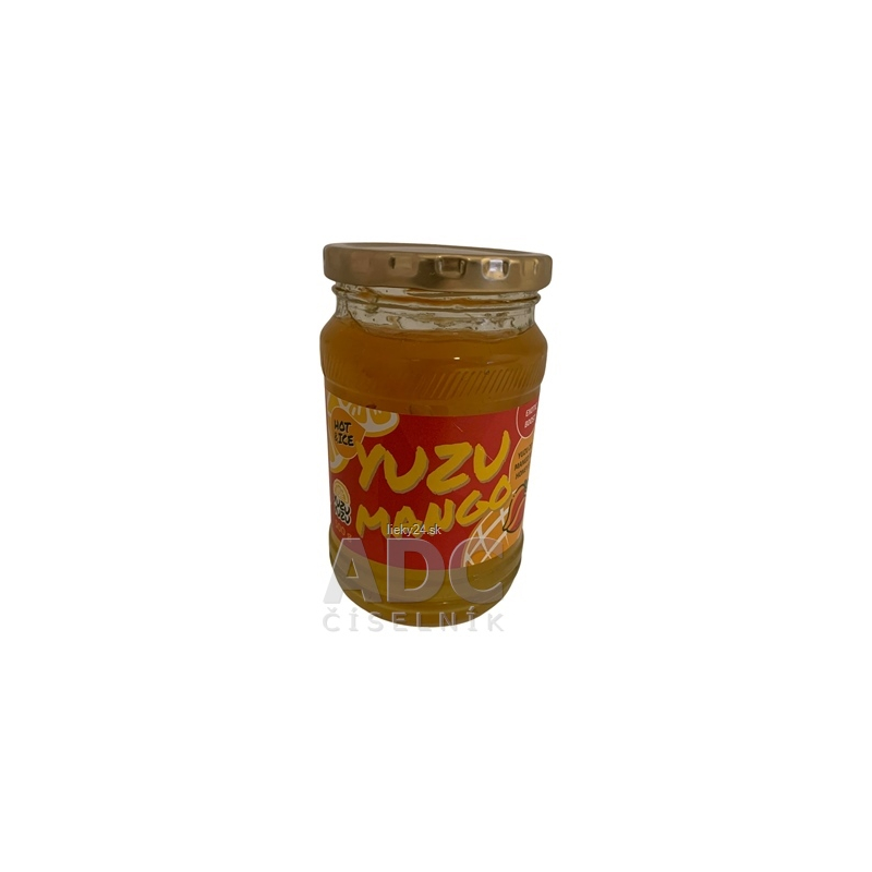 citrusové plody Yuzu 20%, mango 10 %, med 5 %, voda, repkový cukor, ovocný cukor, kyselina citrónová (regulátor kyslosti), karboxymetylcelulóza (zahusťovadlo).