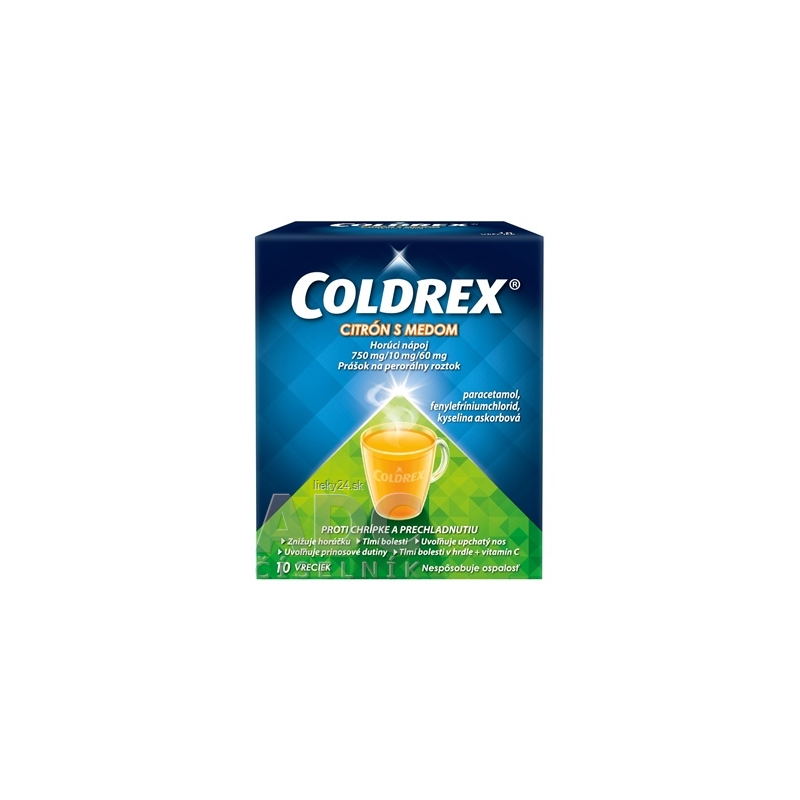 COLDREX HORÚCI NÁPOJ s príchuťou citróna s medom je liek proti chrípke a prechladnutiu. COLDREX HORÚCI NÁPOJ obsahuje kombináciu liečiv, ktoré účinne potláčajú prejavy chrípky ako horúčka, bolesť, upchatý nos. COLDREX HORÚCI NÁPOJ je určený pre dospelých a mladistvých nad 15 rokov (50kg telesnej váhy).