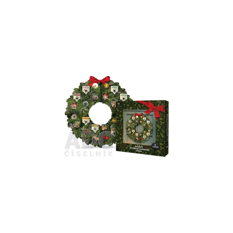Bylinný adventný kalendár veniec obsahuje 24 druhov čajov: