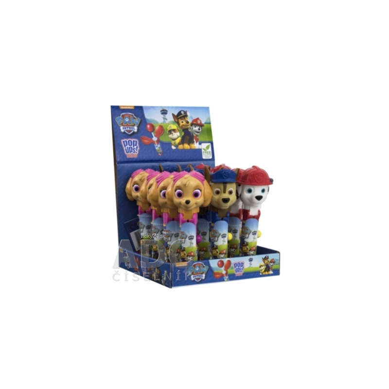 Jahodová lízanka (10 g) v plastovom otváracom puzdre s motívom labkovej patroly: Chase, Marschall a Skye.
