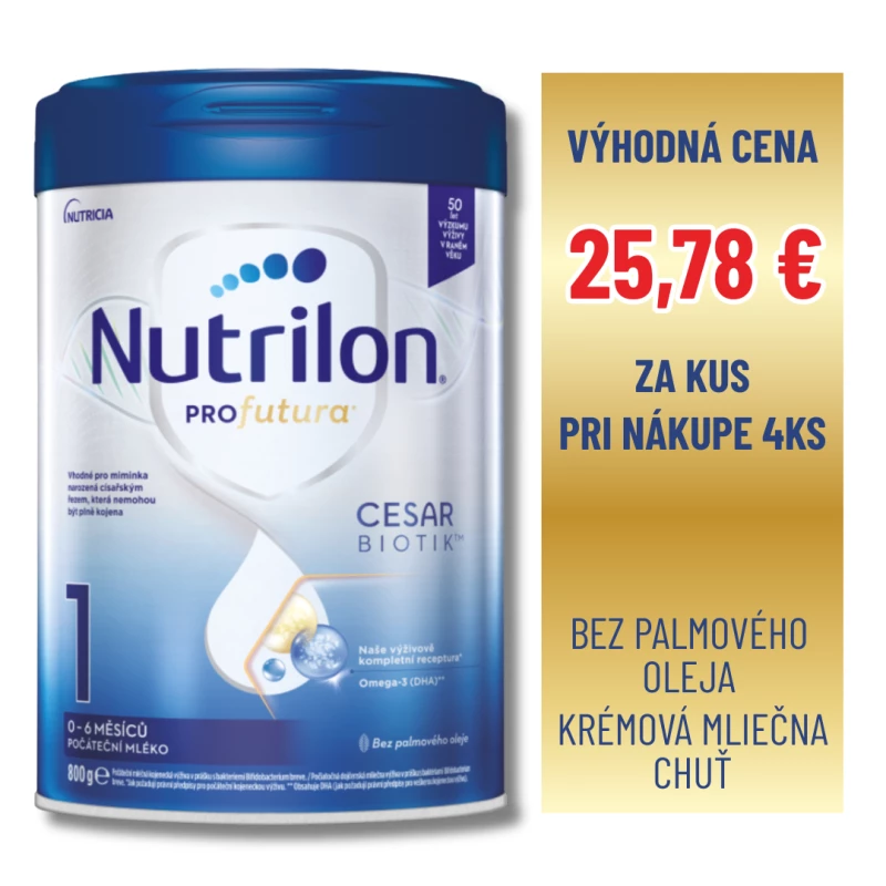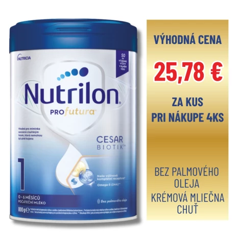 Nutrilon 1 Profutura CESARBIOTIK je počiatočné dojčenské mlieko pre dojčatá do 6 mesiacov. Nutrilon 1 Profutura CESARBIOTIK je vhodná náhrada materského mlieka pre bábätká narodené pomocou cisárskeho rezu, ktoré nemôžu byť plne dojčené.