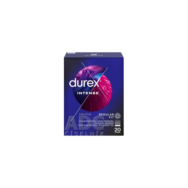 Durex Intense sú vrúbkované prezervatívy so stimulujúcimi výstupkami a stimulujúcim gélom Desirex.