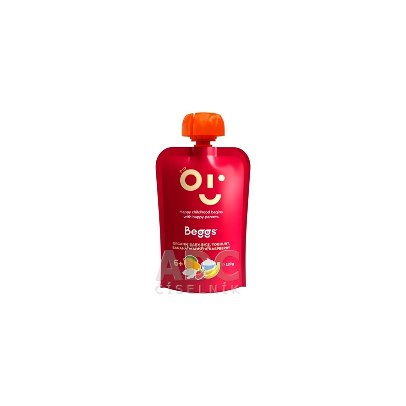 Zloženie: bio banánové pyré (37 %), bio mangové pyré (36 %), bio JOGURT (15 %), bio malinové pyré (10 %), bio ryžová múka (2 %), koncentrát bio citrónovej šťavy, vitamín C. Alergény sú vyznačené VEĽKÝMI PÍSMENAMI.