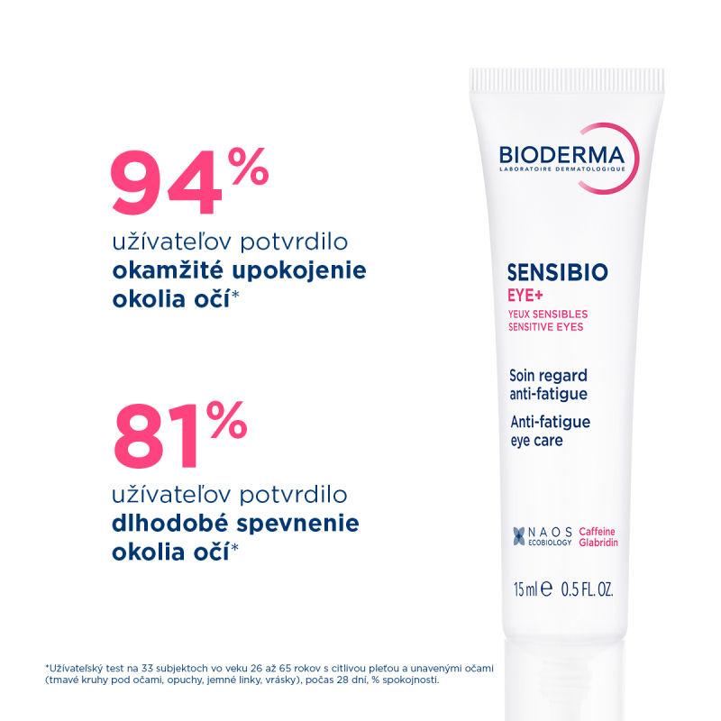 Vyhladzujúce aktívne zložky minimalizujú jemné vrásky. Zvlhčujúce látky prospievajú pokožke.Sensibio Očný je zložený z aktívnych neškodných zložiek, ktoré prešli prísnym výberom, neobsahuje konzervačné látky a parfum a je preto zárukou výbornej tolerancie, aj pre oblasť okolia očí.Sensibio Očný nespôsobuje tvorbu komedónov a je hypoalergénny. Je dobrým podkladom pre mejkap a je vhodný pre ľudí nosiacich kontaktné šošovky.