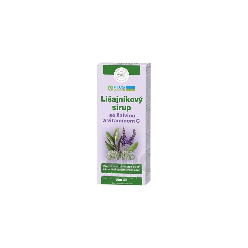 Výživový doplnok v tekutej forme - sirup s obsahom bylinných extraktov (extrakty z lišajníka islandského a šalvie lekárskej) a vitamínu C.