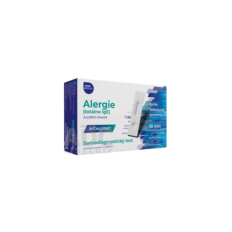 Samodiagnostická pomôcka (rýchlotest ALLERGY-Check®) na zistenie markerov alergie v plnej krvi. Test vyhodnocuje úroveň protilátok IgE v krvi a pomáha tak zistiť precitlivenosť na látku vyvolávajúcu alergiu.