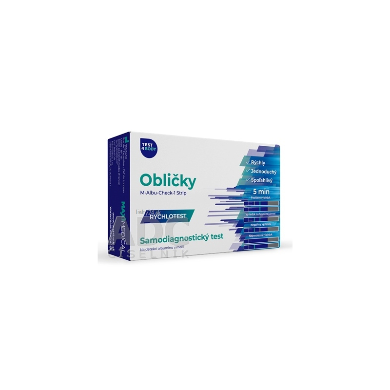 Samodiagnostická testovacia pomôcka (M-Albu-Check-1) na detekciu albumínu v moči. imunochromatografický rýchlotest určený na kvantitatívne stanovenie albumínu v moči. Abnormálne koncentrácie albumínu v moči je možné detegovať už do 10 minút