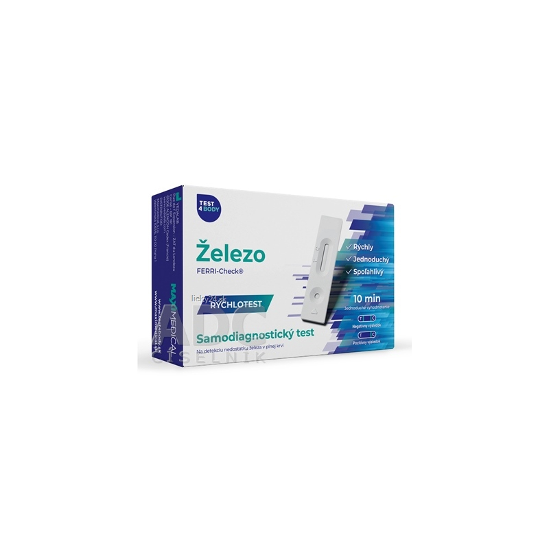 Samodiagnostická testovacia pomôcka (rýchlotest FERRI-Check®) na zistenie nedostatku železa vo vzorke plnej krvi. Rýchly imunodiagnostický test na zistenie hladiny feritínu (proteín, ktorý zabezpečuje skladovanie železa v bunkách).