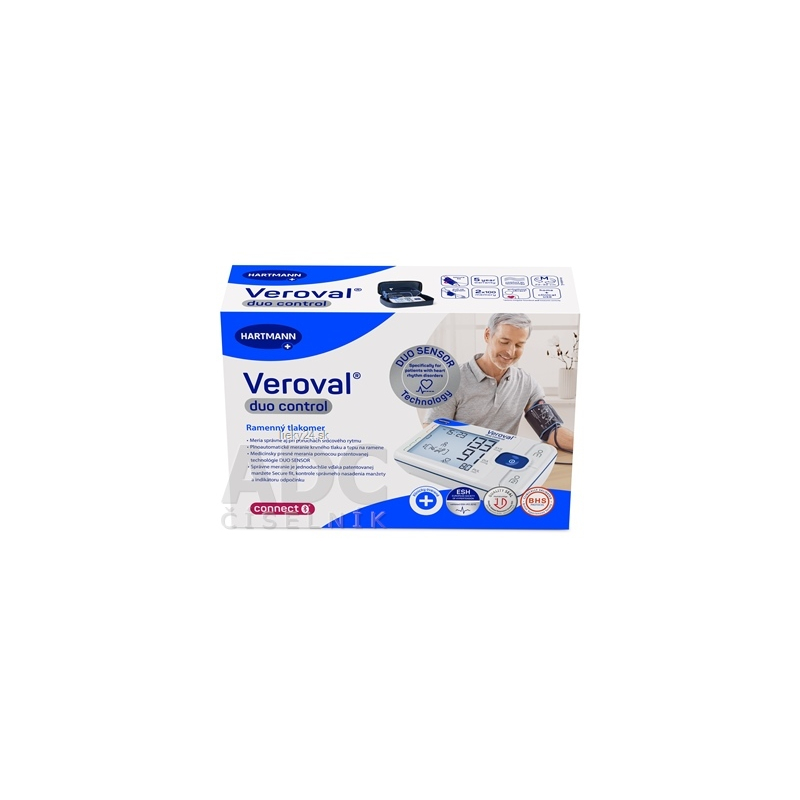 Tlakomer na rameno HARTMANN Veroval duo control connect ponúka spoľahlivý a rýchly spôsob merania krvného tlaku v pohodlí domova. Patentovaná metóda merania Duo Sensor využíva na zisťovanie hodnôt krvného tlaku oscilometrickú a posluchovú metódu. Kombinácia týchto metód umožňuje získať presné výsledky aj v prípade prítomnosti srdcovej arytmie. Je obohatený o trojfázové meranie nazývané expertný režim. Samozrejmosťou je kvalita prístroja, na ktorú výrobca poskytuje nadštandardnú 5-ročnú záruku. Na meranie sa používa manžeta na rameno vo veľkosti M s nastaviteľným obvodom. Výsledky sa zobrazujú na prehľadnom podsvietenom displeji. Tlakomer je možné pripojiť cez Bluetooth k mobilnému zariadeniu a zaznamenávať výsledky do mobilnej aplikácie Veroval medi.connect.