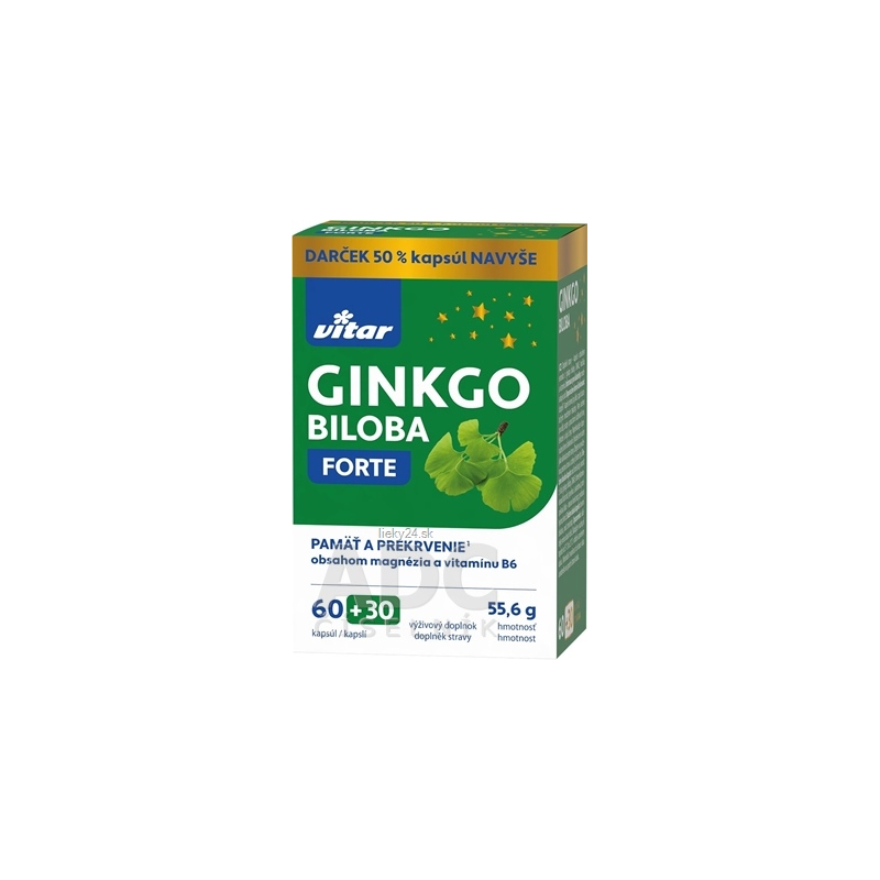 Výživový doplnok - kapsuly s obsahom extraktu z ginkgo biloby, DMAE, horčíka, vitamínov B6 a C.