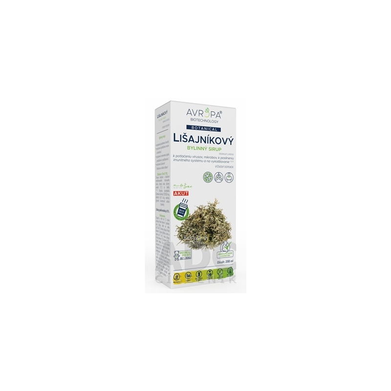 Výživový doplnok. Bylinný sirup, obsahujúci bylinný extrakt z lišajníka islandského (Cetraria islandika).