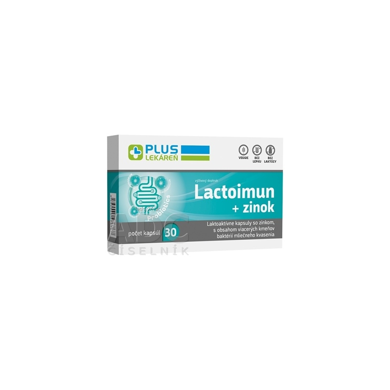 komplex 8 kmeňov vitálnych mikroorganizmov (Bifidobacterium animalis, Bifidobacterium bifidum, Bifidobacterium breve, Bifidobacterium longum, Lacticaseibacillus rhamnosus, Lactobacillus acidophilus, Lactiplantibacillus plantarum, Streptococcus salivarius) - 8x109 CFU, fruktooligosacharidy (FOS) - 89 mg, zinok (glukónan zinočnatý) - 1,5 mg (30 % referenčnej výživovej hodnoty).