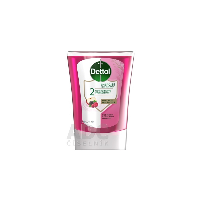 Mydlo Dettol Vôňa lesného ovocia náplň na použitie výhradne v Dettol bezdotykovom dávkovači mydla. Mydlo je obohatené o hydratačné zložky (glycerín a kyselinu mliečnu) pre lepšiu starostlivosť o ruky. Jemné na koži, drsné k mikróbom.