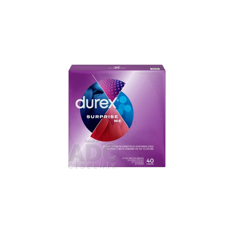 Durex Surprise Me kondómy v sebe ukrývajú niekoľko druhov obľúbených kondómov vysokej kvality, ktoré zaisťujú ochranu aj spríjemnenie intímnych chvíľok. Prezervatívy z prírodného kaučukového latexu