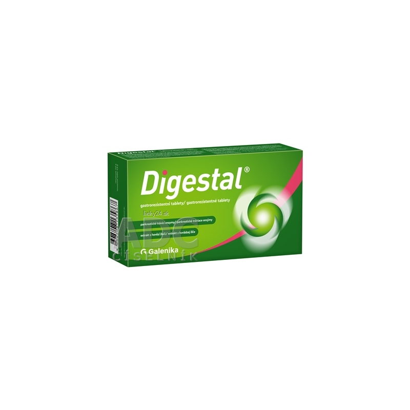 Výživový doplnok, gastrorezistentné tablety s pankreatickými tráviacimi enzýmami (proteáza, amyláza, lipáza) a extraktom z hovädzej žlče.