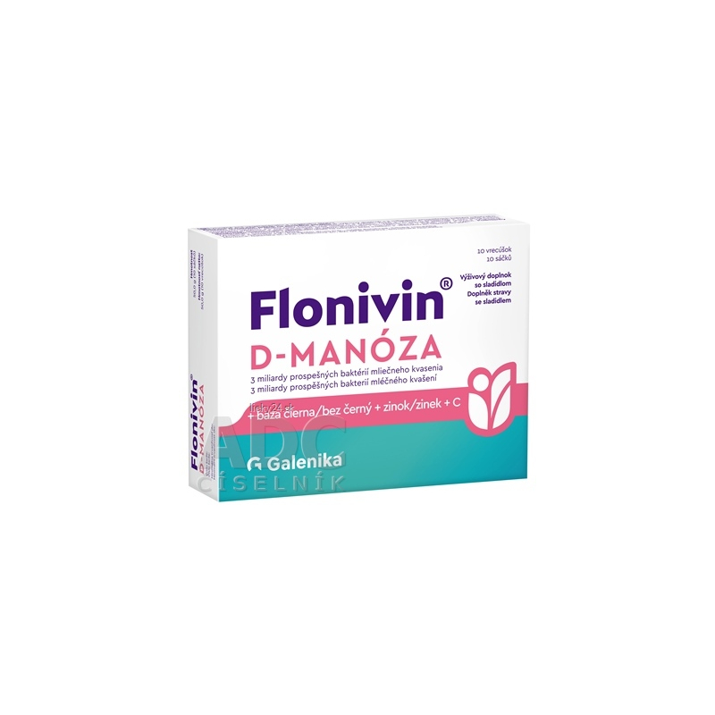 Obsahuje 3 miliardy prospešných baktérií mliečneho kvasenia, s D-manózou, plodmi bazy čiernej, vitamínom C a zinkom.