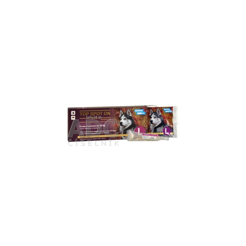 Roztok na nakvapkanie na kožu – spot-on pre psy. 1 aplikátor (3 ml) obsahuje účinnú látka Permethrinum 1950 mg.