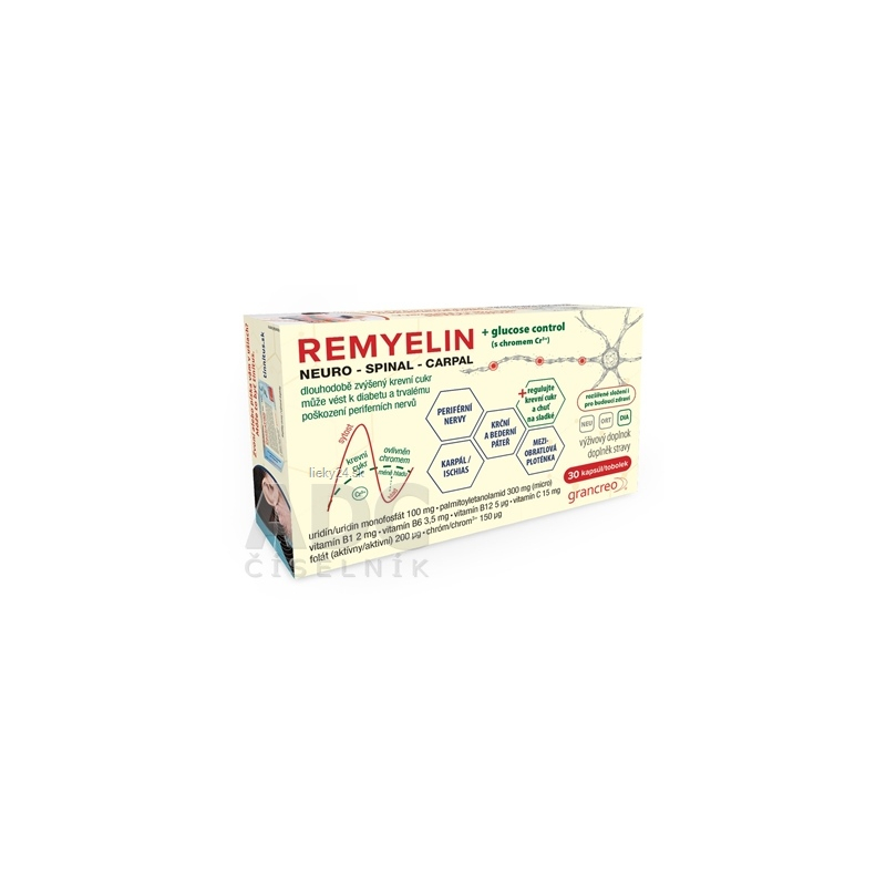 Výživový doplnok obsahuje kombináciu uridínu (UMP), palmitoyletanolamidu (PEA), vitamínov skupiny B (B1, B6, B12), vitamínu C a biologicky aktívneho folátu, doplnený o chróm.