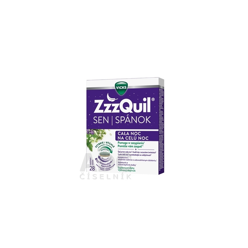 Tablety s melatonínom, vitamínom B6 a bylinnými zložkami valeriány a medovky. Melatonín a bylinné zložky sú postupne uvoľňované 8 hodín počas noci. Od 18 rokov.