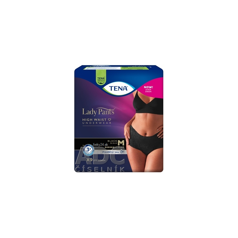 Čierne absorpčné nohavičky TENA Lady Pants Black pre ženy so strednou až ťažkou inkontinenciou. Vyzerajú ako spodná bielizeň, chránia ako TENA.