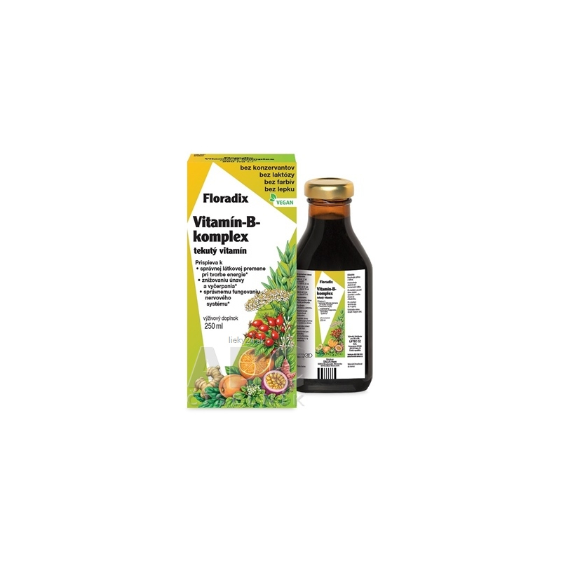 Tekutý prípravok obsahujúci B-komplex vitamínov.