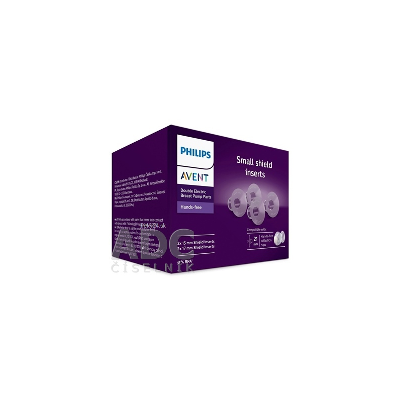Vložky na bradavku s rozmerom 17 mm (v balení 2 kusy) a 15 mm (2 kusy) sú kompatibilné s prsným nadstavcom s rozmerom 21 mm.
