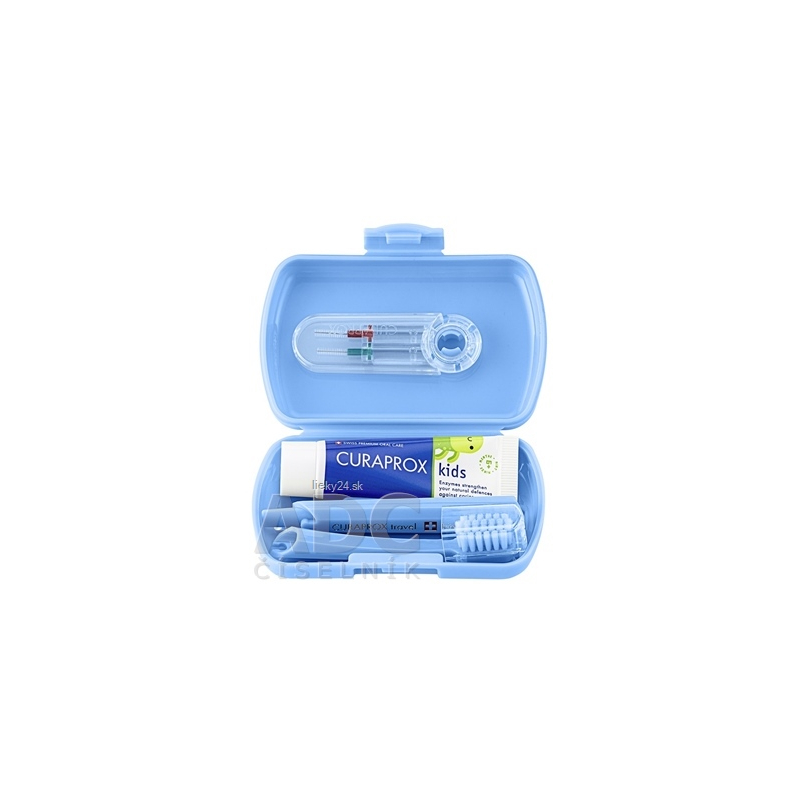 Cestovná sada na dentálnu hygienu pre deti v praktickej plastovej škatuľke obsahuje: