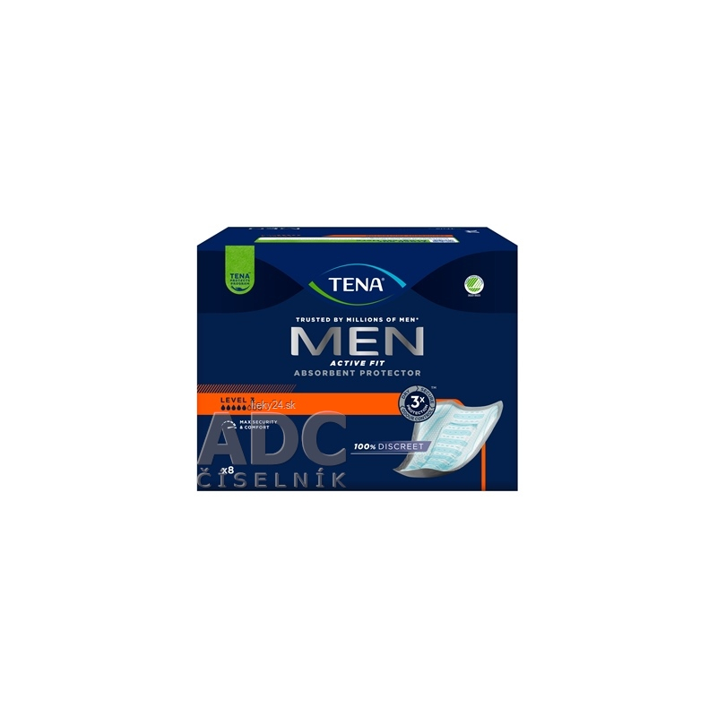 Absorpčné pomôcky TENA Men sú špeciálne vyvinuté pre mužov so stredným únikom moču. Sú 100% diskrétne a spoľahlivé.