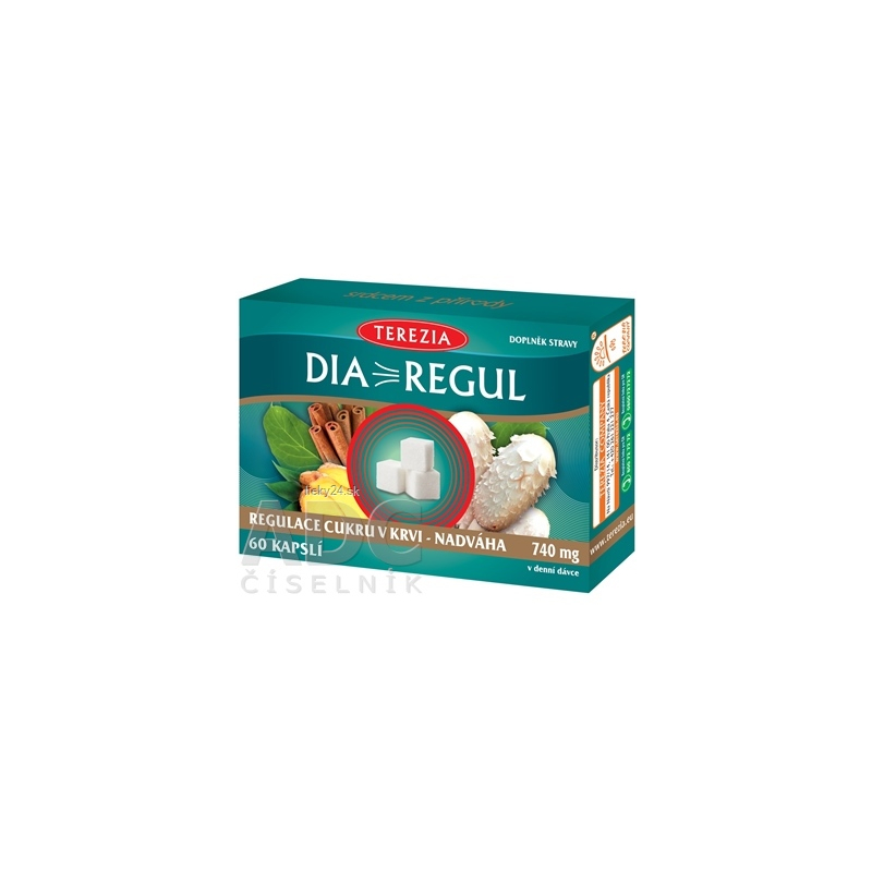 Zloženie: 1 kapsula obsahuje 370 mg zmesi DIAREGUL [prášok sušenej lyofilizovanej huby hnojníka obyčajného (Coprinus comatus), gymnema lesná (Gymnema sylvestre) extrakt, sušený zázvor (Zingiber officinale), sušená škorica (Cinnamomum zeylanicum), pikolinát chromitý]. Obal kapsuly: želatína.