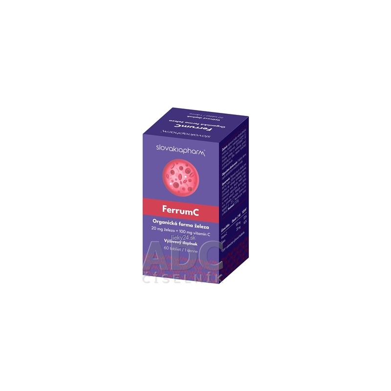 Výživový doplnok FerrumC je kombináciou 20 mg železa (v organickej forme) a 100 mg vitamínu C v 1 tablete.