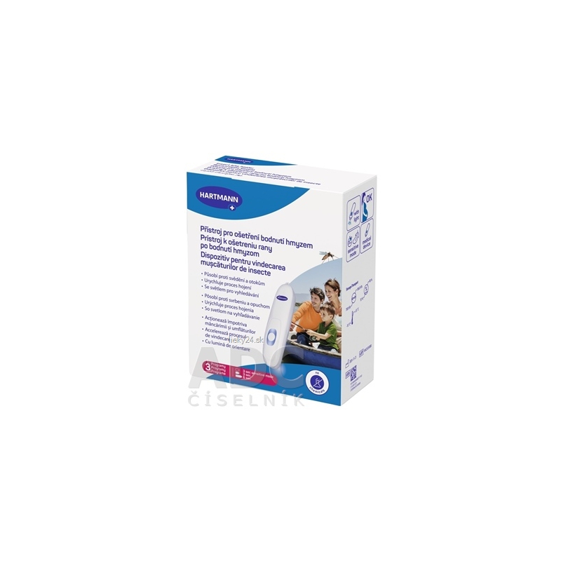 Prístroj k ošetreniu rany po bodnutí hmyzom HARTMANN Insect bite healer rýchlo a cielene zmierňuje svrbenie, zápal a opuch po uštipnutí hmyzom a komármi. Rýchlo sa zahrievajúci keramický povrch premieňa toxíny z uštipnutia alebo bodnutia hmyzom, čím urýchľuje hojenie. To všetko vďaka koncentrovanému pôsobeniu tepla a bez použitia akýchkoľvek chemických látok.