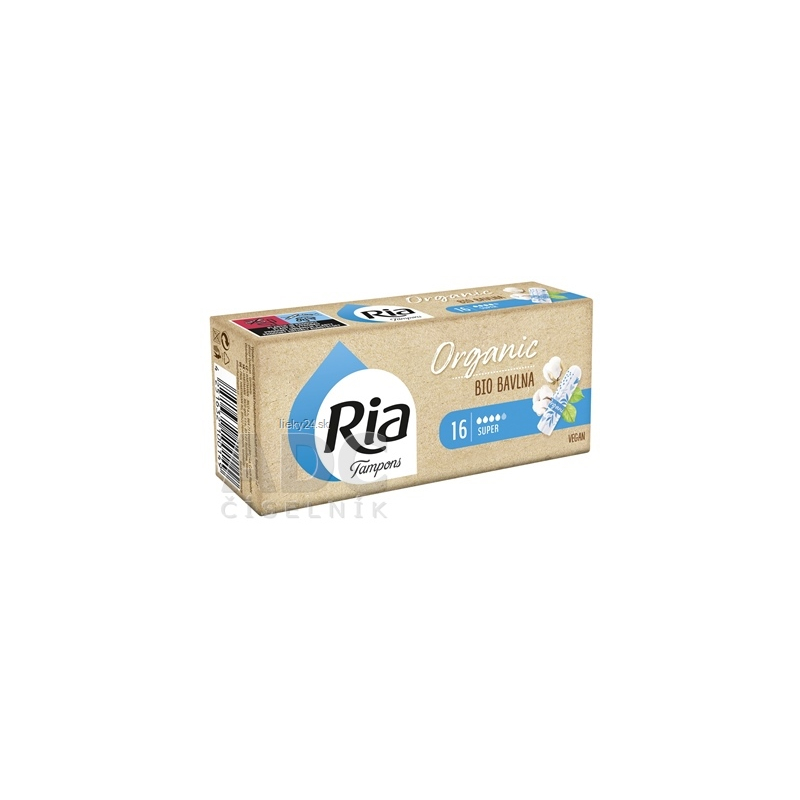 Ria Organic tampóny sú vyrobené zo 100 % bio bavlny pochádzajúcej z certifikovaného ekologického poľnohospodárstva. Pri výrobe bio bavlny sa nepoužívajú pesticídy, herbicídy ani umelé hnojivá. Aj šnúrka je vyrobená zo 100 % bio bavlny. Žiadny z použitých materiálov nie je živočíšneho pôvodu. Samozrejmosťou zostáva, že ani produkty, ani materiály nie sú testované na zvieratách.