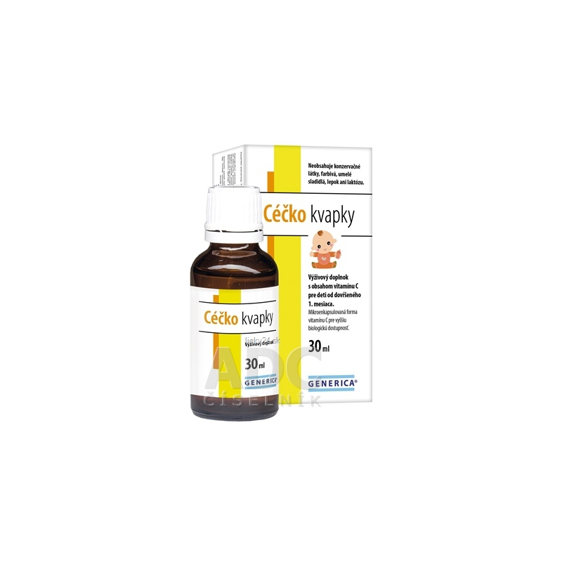 Výživový doplnok s obsahom vitamínu C pre deti od dovŕšeného 1. mesiaca. Céčko kvapky obsahujú vitamín C vyrobený technológiou mikroenkapsulácie.