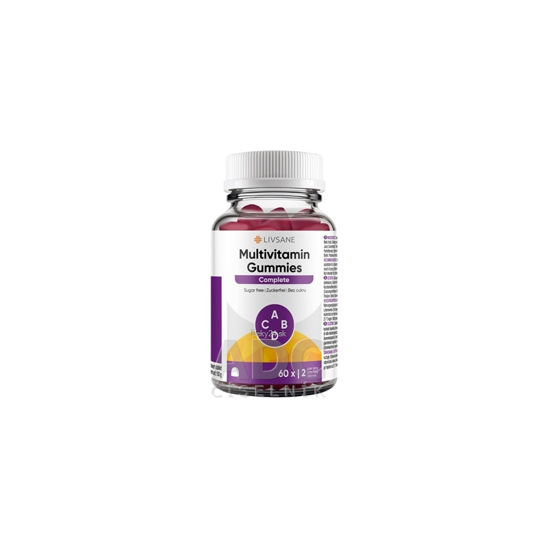 Zloženie: Sladidlá (maltitol, erytritol), želatína, vitamín C (kyselina L-askorbová), regulátory kyslosti (kyselina citrónová, kyselina jablčná), želírujúca látka (agar), vitamín E (d-alfa-tokoferylacetát), prírodná jahodová príchuť, koncentrát šťavy z fialovej mrkvy, vitamín B12 (kyanokobalamín), filmotvorná látka (karnaubský vosk, kokosový olej), kyselina pantoténová (pantotenát vápenatý), vitamín A (retinylpalmitát), vitamín B6 (pyridoxínhydrochlorid), vitamín D3 (cholekalciferol), kyselina listová, biotín, jodid draselný, inozitol, citrát zinočnatý. Bez lepku a laktózy.