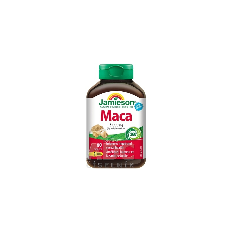 Maca 20:1 extrakt (Lepidium myenii, koreň) ... 150 mg / ekvivalent k 3 000 mg rastliny