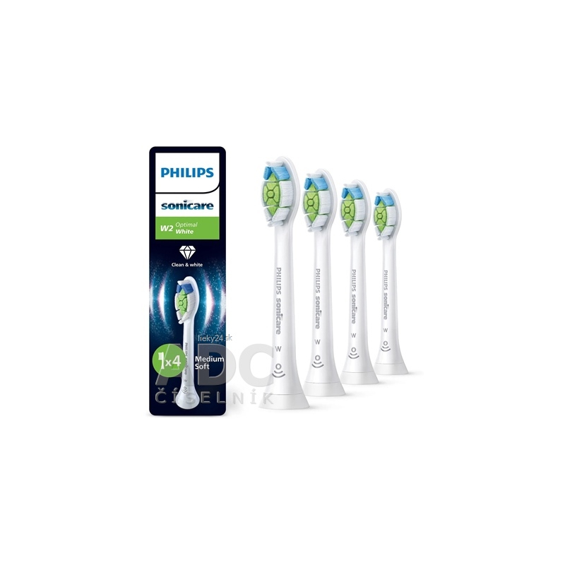 Výmenné kefkové hlavice W2 Optimal White. Možno ich nasadiť na telá všetkých zubných kefiek Philips Sonicare s výnimkou modelov Philips One a Essence. Na dokonalé odstránenie pigmentácií, vhodné tiež v priebehu bielenia zubov.
