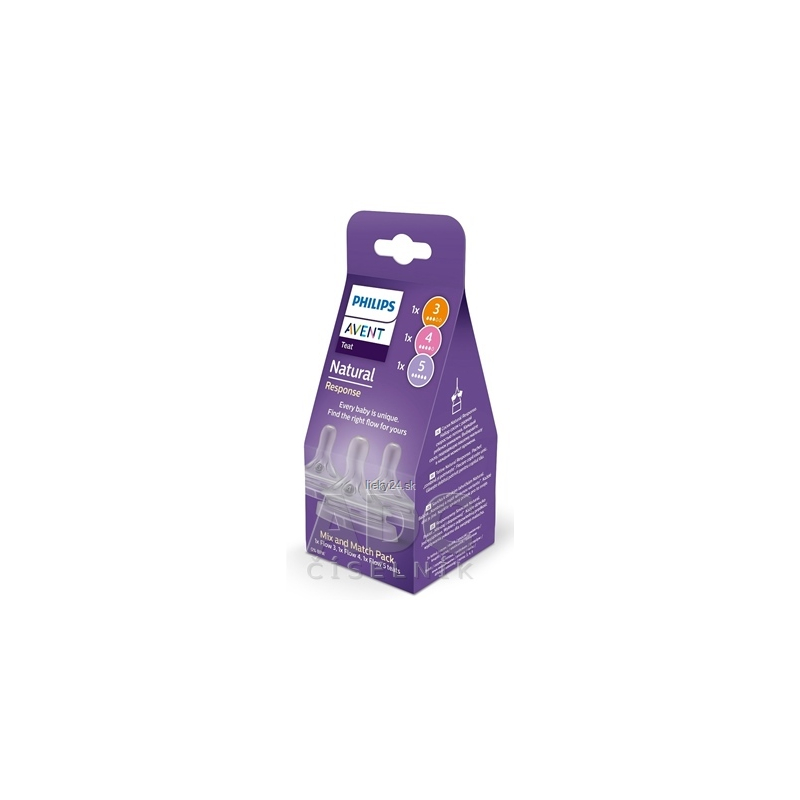 Cumlík pre dojčenské fľaše Philips Avent Natural - mix 3 veľkostí, pre výber vhodného prietoku.