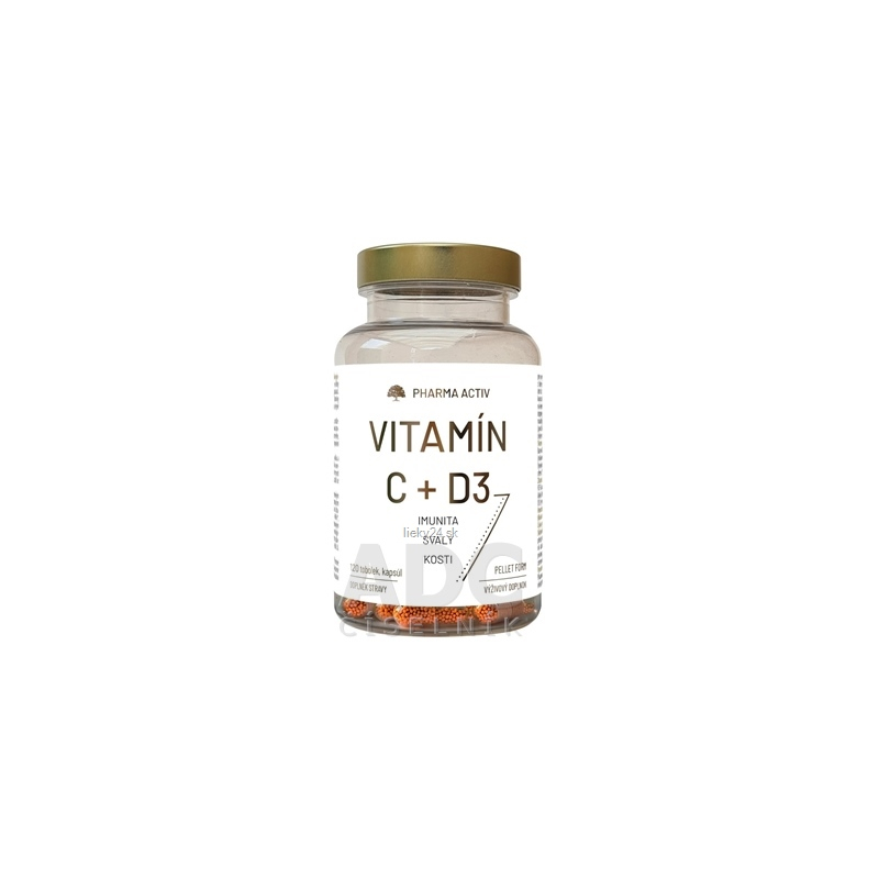 Zloženie: kyselina L-askorbová (Vitamín C), Farbivo (Sunset Yellow FCF Granular), Plnidlo (mikrokryštalická celulóza), Protihrudkujúca látka (horečnaté soli mastných kyselín), Cholekalciferol (Vitamín D3), Hydroxypropylmetylcelulóza HPMC kapsula.