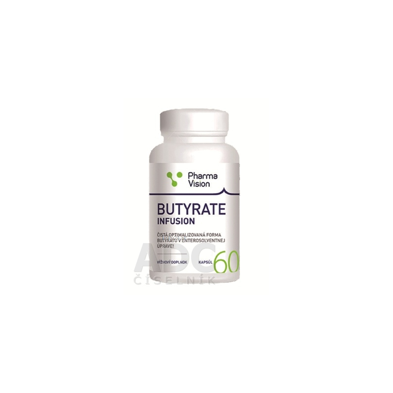 Výživový doplnok Butyrate Infusion je určený k vnútornému doplneniu butyrátu. Butyrát predstavuje elementárnu krátko reťazcovú mastnú kyselinu (SCFA). Je produkovaná hlavne baktériami fermentujúcimi rozpustnú vlákninu v čreve. Množstvo butyrátu môže byť znížené pri nerovnováhe črevnej mikrobioty. Enterosolventná úprava chráni butyrát pred nízkym pH v žalúdku a zaisťuje jeho neporušené dopravenie do čreva.
