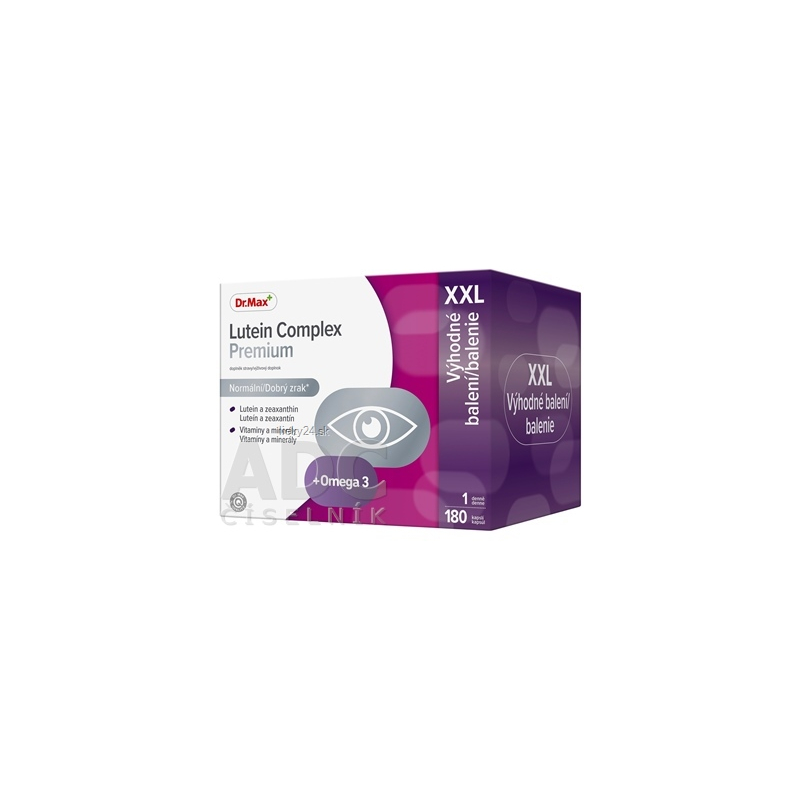 Kapsula [želatína, zvlhčovadlo (glycerol), voda, farbivá (oxidy a hydroxidy železa)], rybí olej vo forme etylesterov (ryby) - 300 mg z toho EPA - 210 mg a DHA - 24 mg, slnečnicový olej, vitamín C (kyselina L-askorbová) - 80 mg (100 %*), luteínový olej [z kvetov aksamietnice vzpriamenej (Tagetes erecta L.), obsahuje luteín - 15 mg], emulgátor (mono a diglyceridy mastných kyselín), vitamín E (DL-alfa-tokoferylacetát) (α-TE) - 30 mg (250 %*), zinok (oxid zinočnatý) - 11,2 mg (112 %*), selén (kvasnice obohatené selénom) - 26 µg (47 %*), zeaxantínový olej [z kvetov aksamietnice vzpriamenej (Tagetes erecta L.), obsahuje zeaxantín - 2,5 mg], beta-karotén - 2 mg (zodpovedá vitamínu A - 333 µg (42 %*)), meď (síran meďnatý) - 1 mg (100 %*).