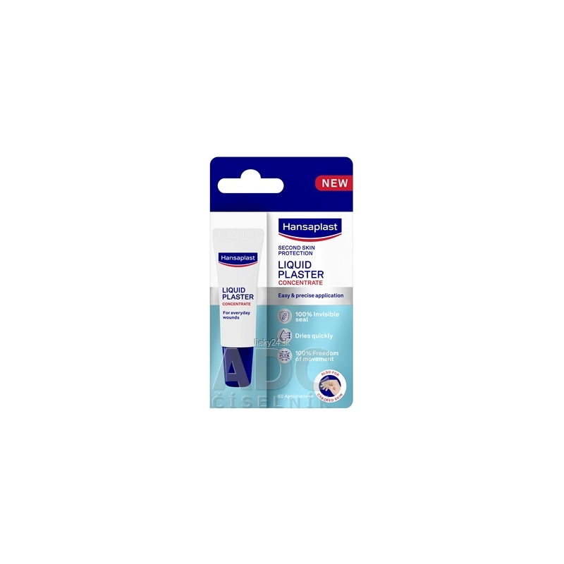 Tekutá náplasť vo forme koncentrátu na presné prekrytie a ochranu drobných, povrchových a suchých každodenných poranení, ako sú škrabance, rezné rany alebo odreniny. Po nanesení prípravok rýchlo zasychá a zanecháva neviditeľný, pružný, tenký a vodeodolný film, ktorý ranu prekryje a ochráni.