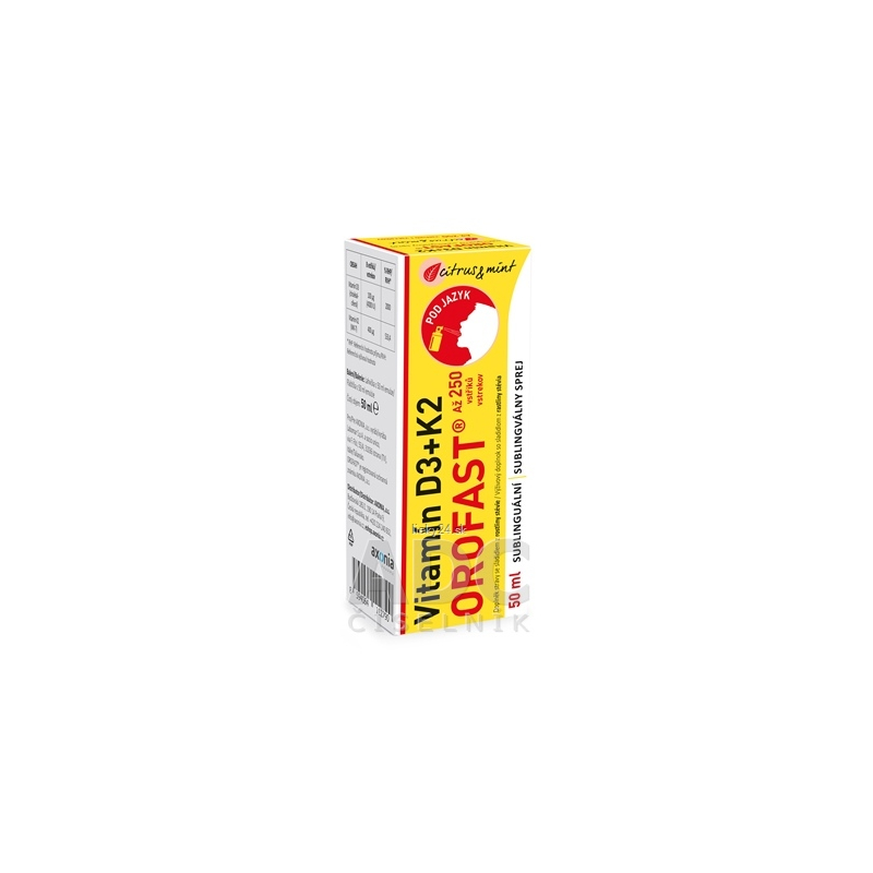 Sublingválny sprej Vitamín D3+K2 OROFAST obsahuje špeciálne upravenú, patentovanú nanoemulziu vitamínov D3 a K2. Táto forma umožňuje rýchle vstrebanie oboch vitamínov do krvného obehu priamo cez vysokovaskularizovanú sublingválnu sliznicu, bez nutnosti črevnej absorpcie.